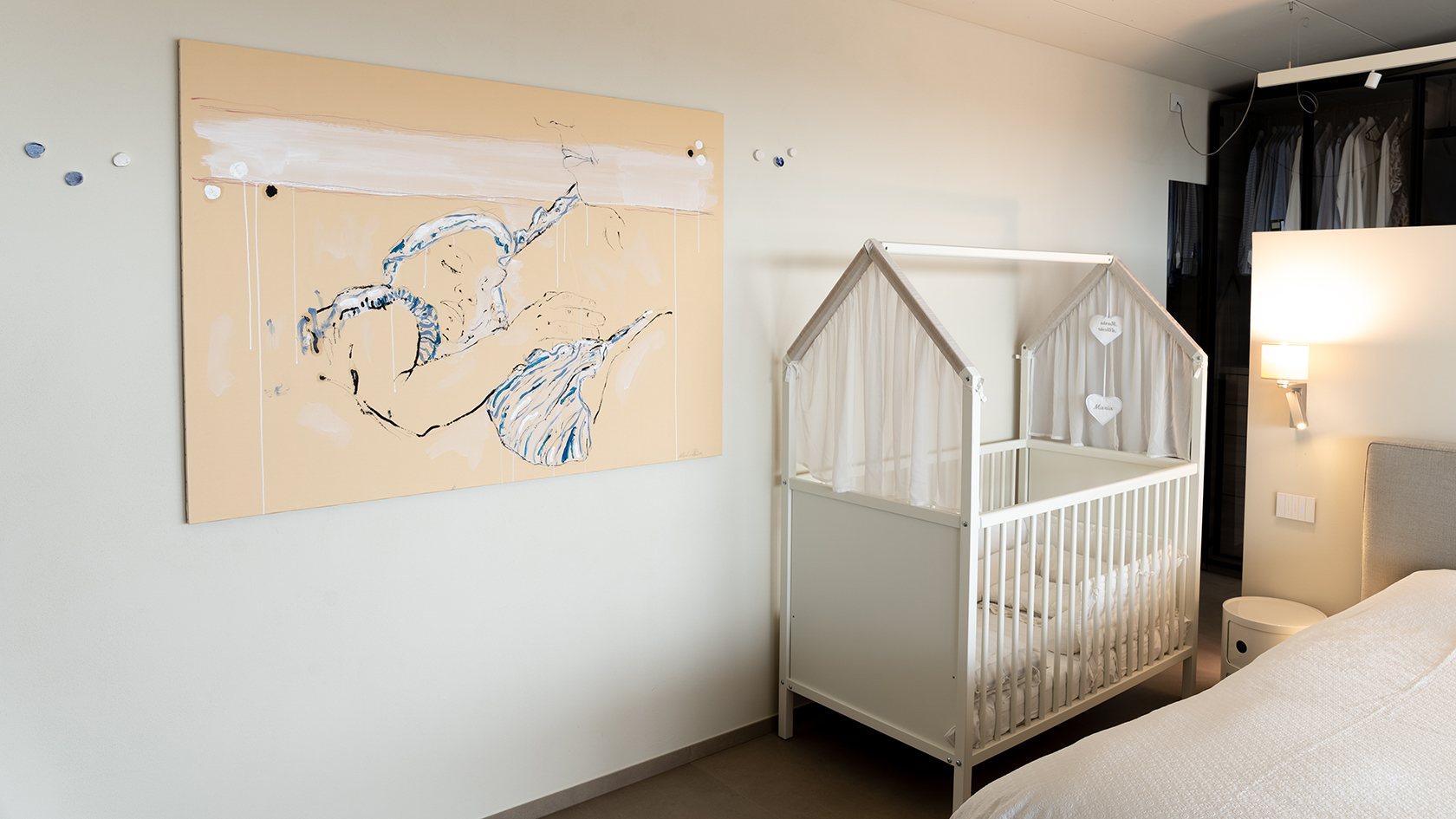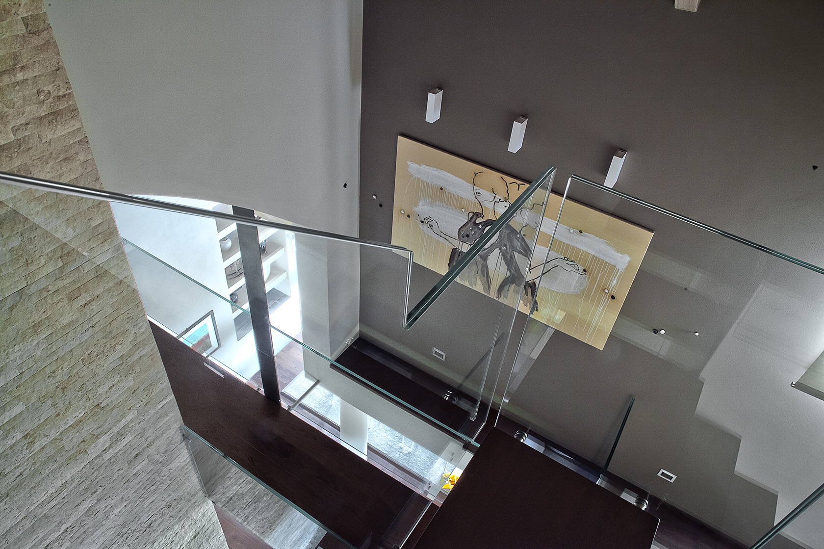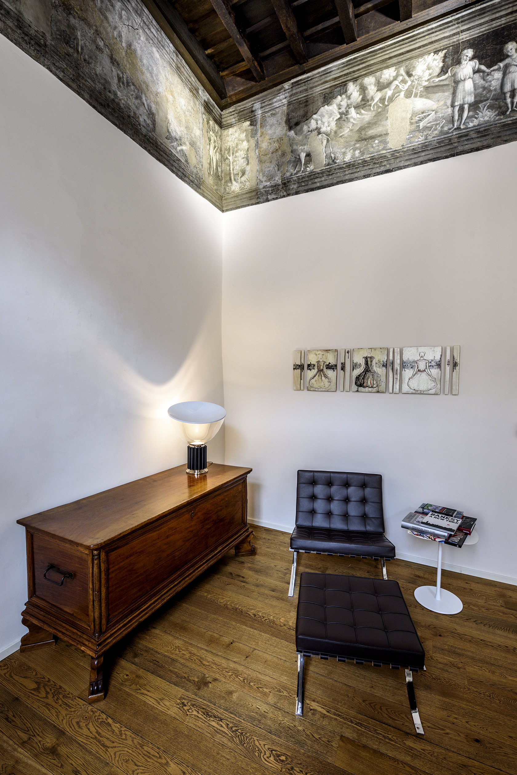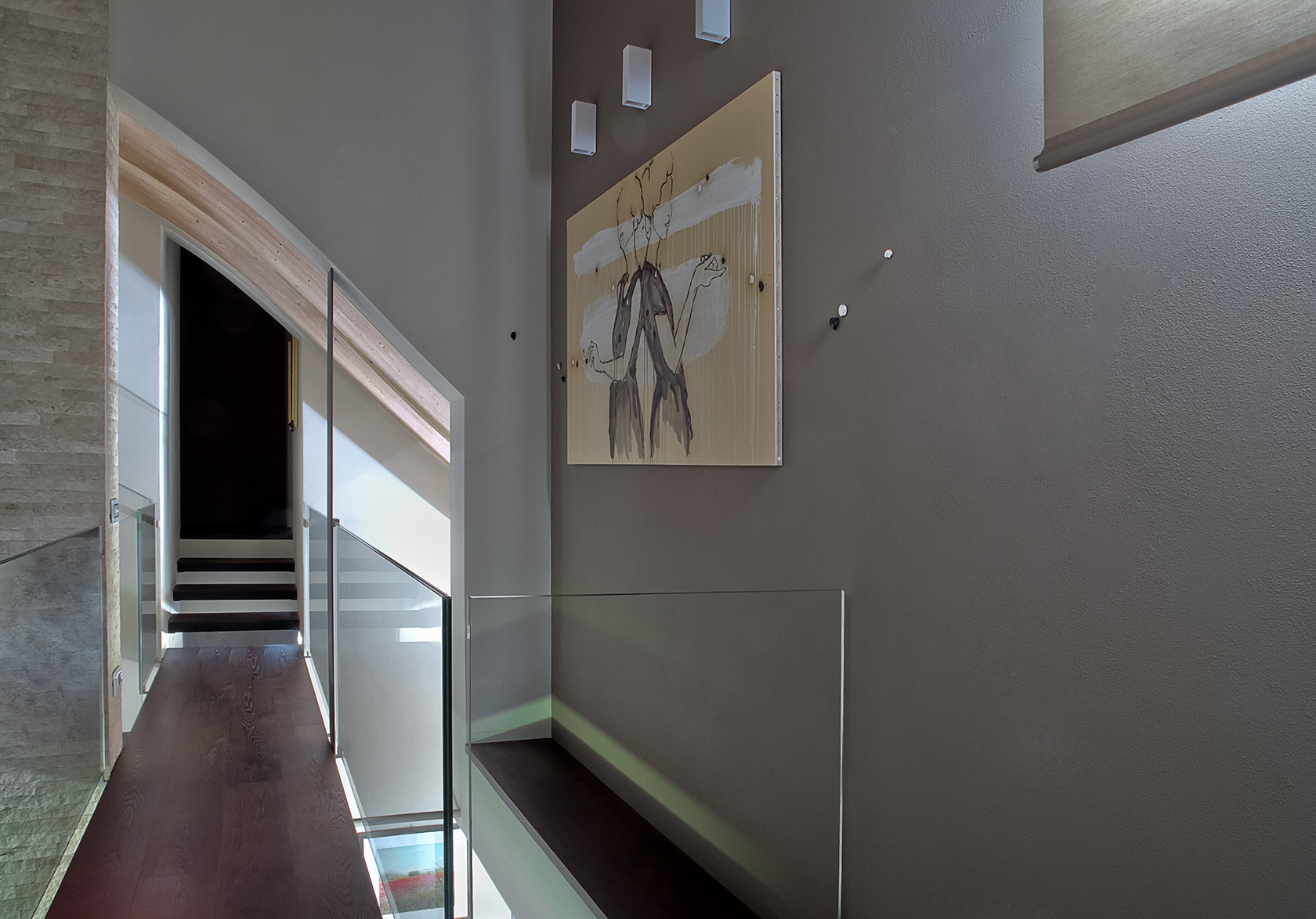 Diviene parte integrante dello spazio della casa, della sua architettura. Se l’opera esplodesse minando nello spazio parte di sé, allo spettatore è chiesto di ricomporla, in un colpo d’occhio.
