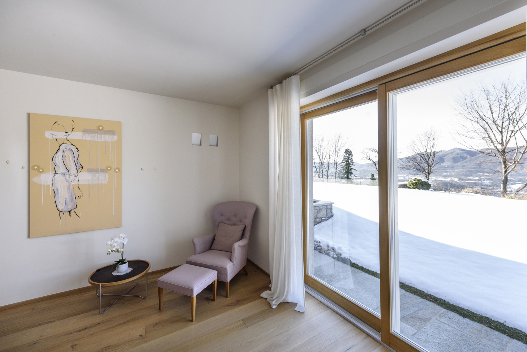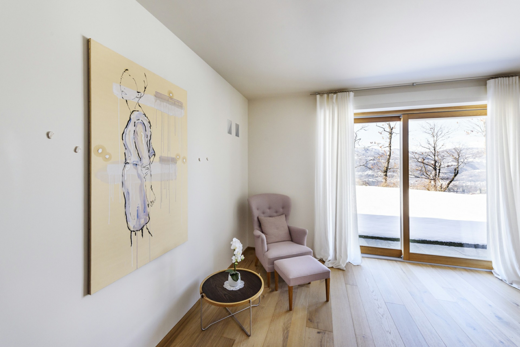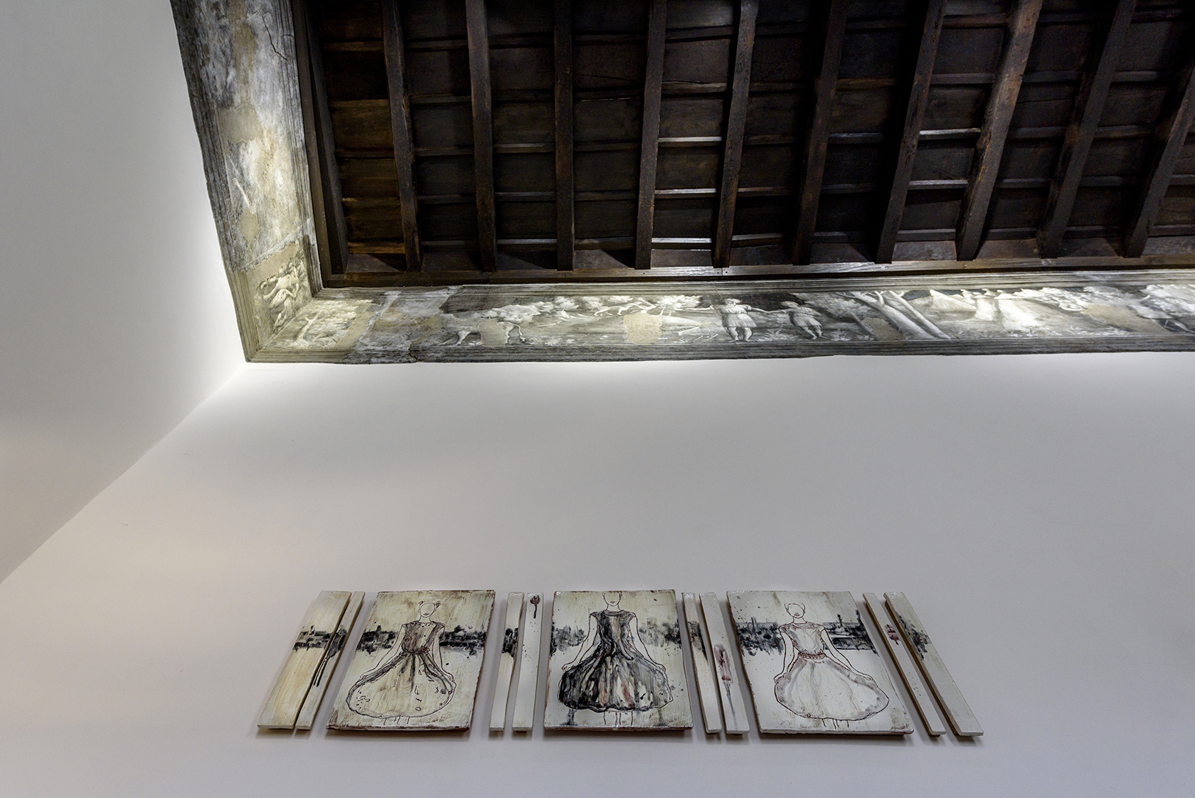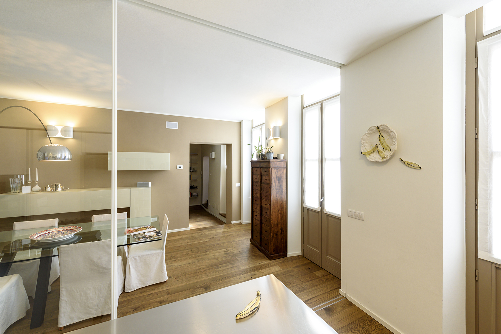Diviene parte integrante dello spazio della casa, della sua architettura. Se l’opera esplodesse minando nello spazio parte di sé, allo spettatore è chiesto di ricomporla, in un colpo d’occhio.